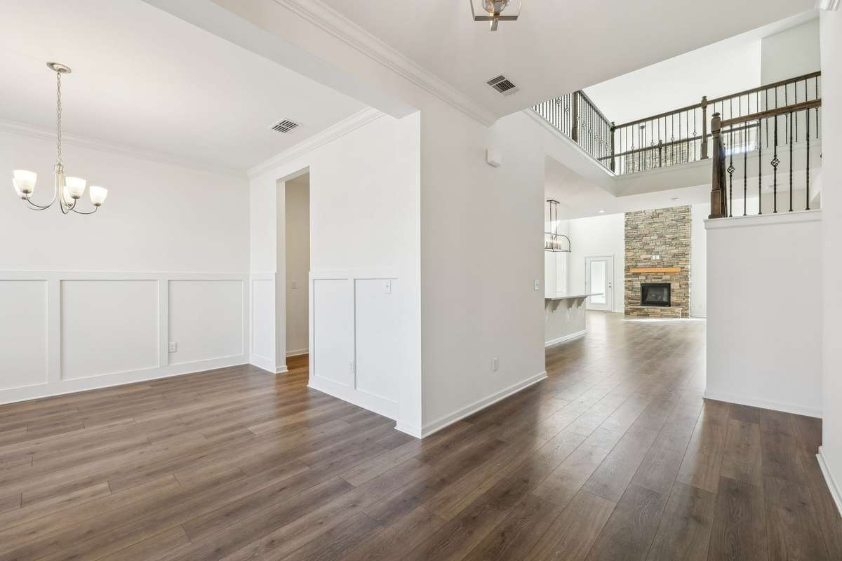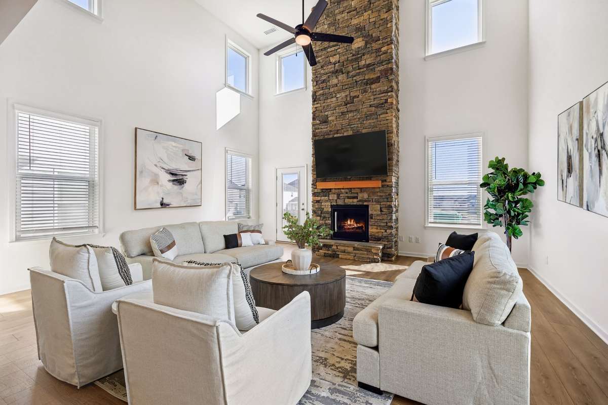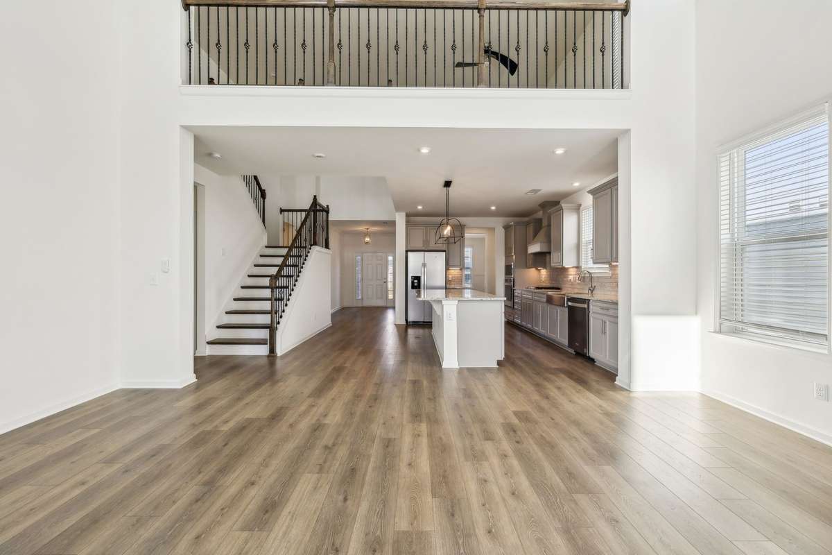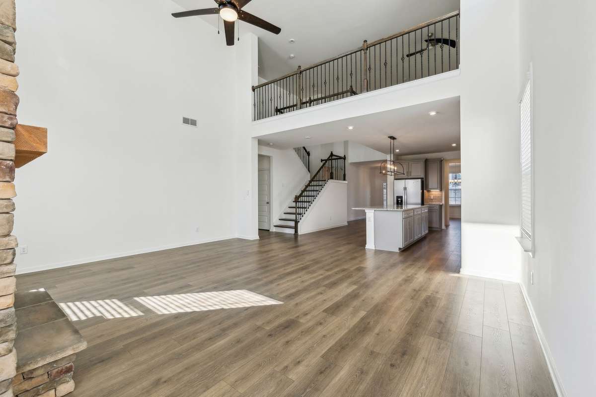 Move- In before the holidays! Full of Upgrades. You’ll love this North- facing home with $ 105K in upgrades and two primary suites—one on each level. The chef’s kitchen is the upgraded luxury package it features a gas range with wood hood, stainless steel appliances, and granite counters. The refrigerator plus washer & dryer stay. A striking two- story stone fireplace anchors the open living area, highlighted by hardwood floors, oak- tread stairs with iron spindles, and a loft overlooking the entry. The English- Revival exterior showcases a premium brick- and- stone elevation. Throughout the home, you’ll find soft- close cabinetry, upgraded carpet pad, and a handy drop zone valet bench at the garage entrance.
