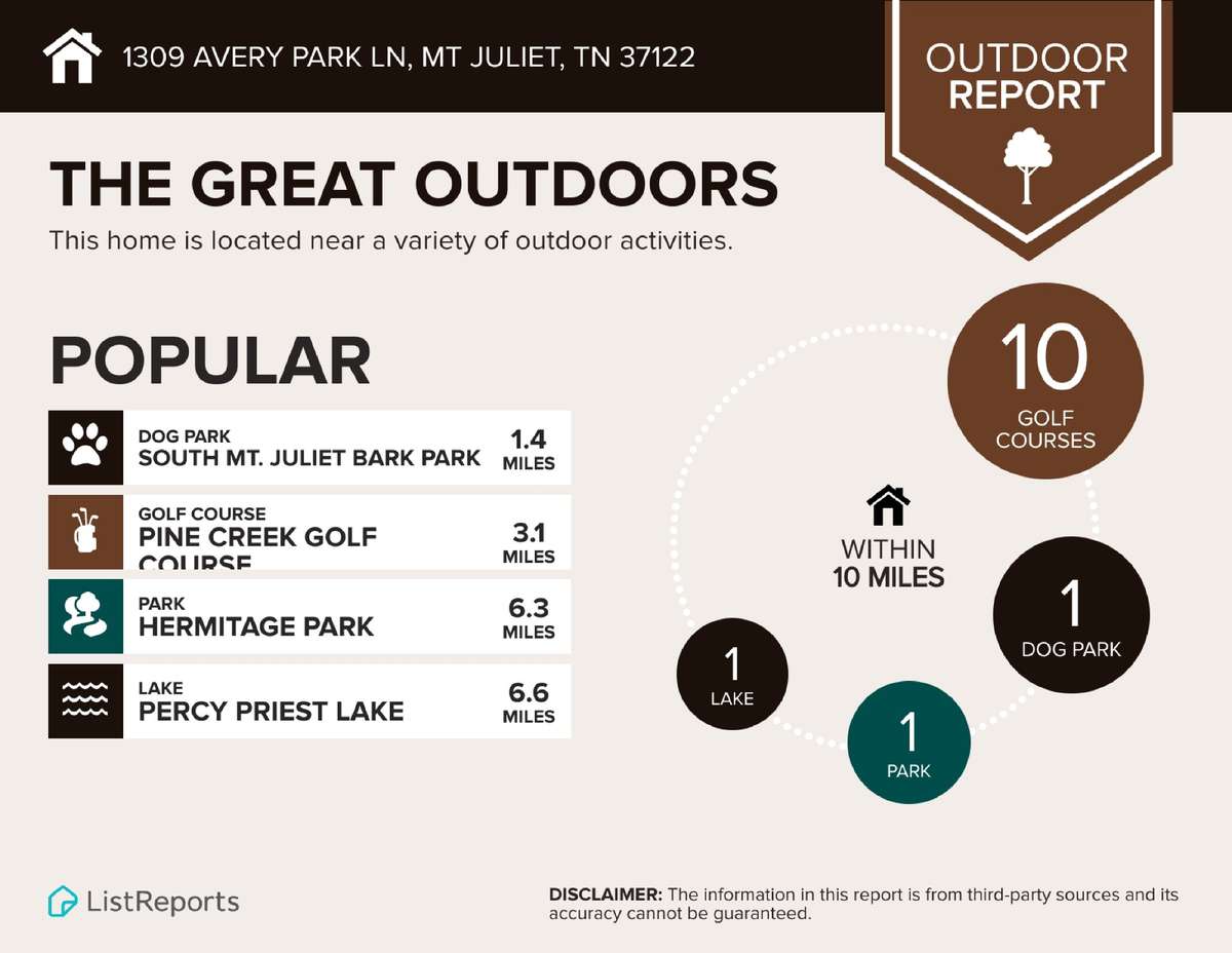 From Nashville I-40E to first Mt.Juliet exit. Right at exit, Left at 3rd light on Providence Pkwy, Right on Providence Trail, second Right on Arbor Springs Dr. 1st Right on River Heights Dr. Right on Avery Park Lane. Home ahead on Right.