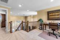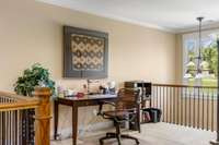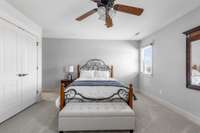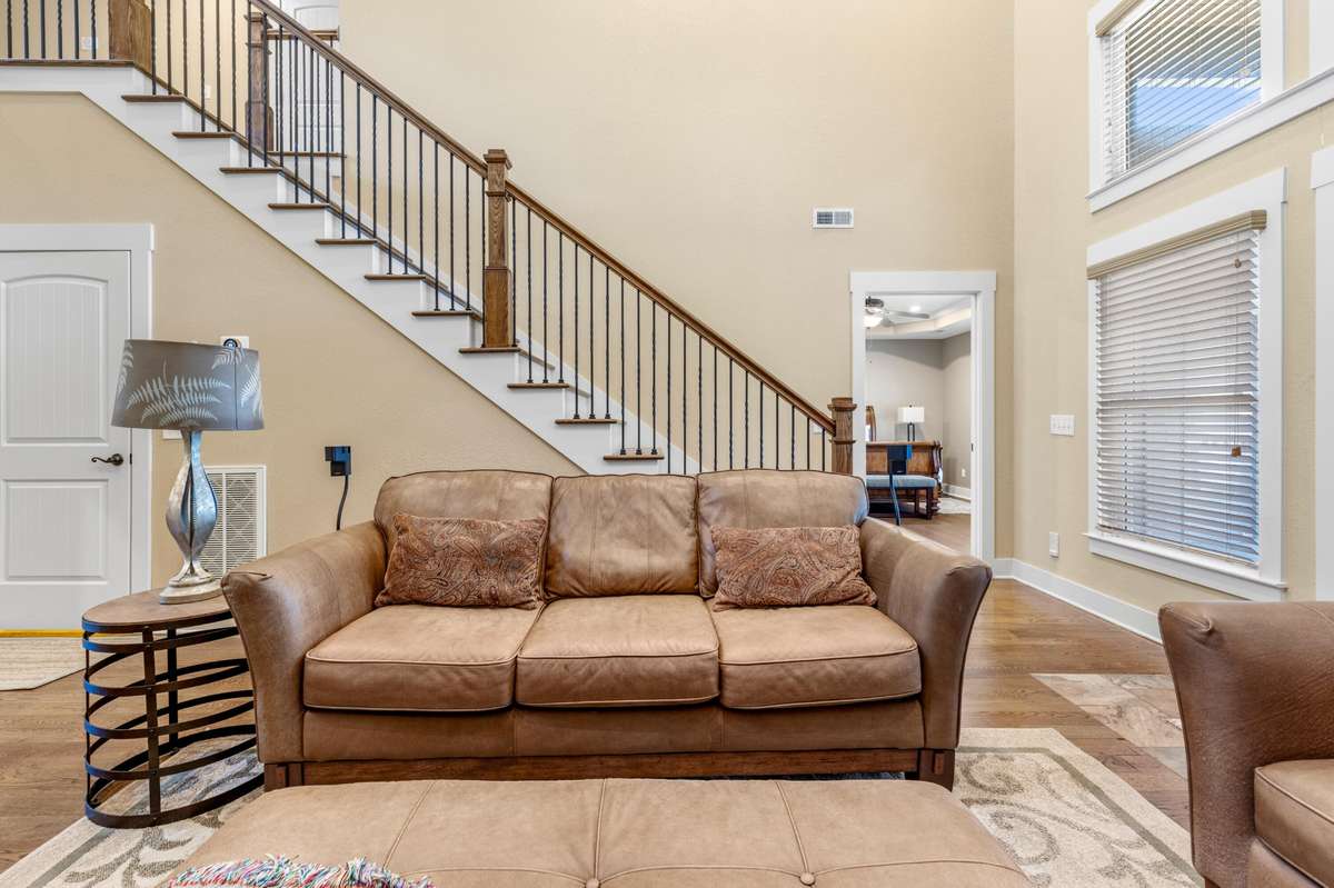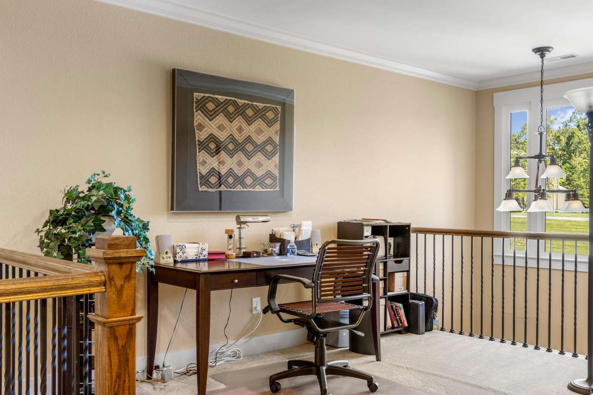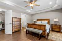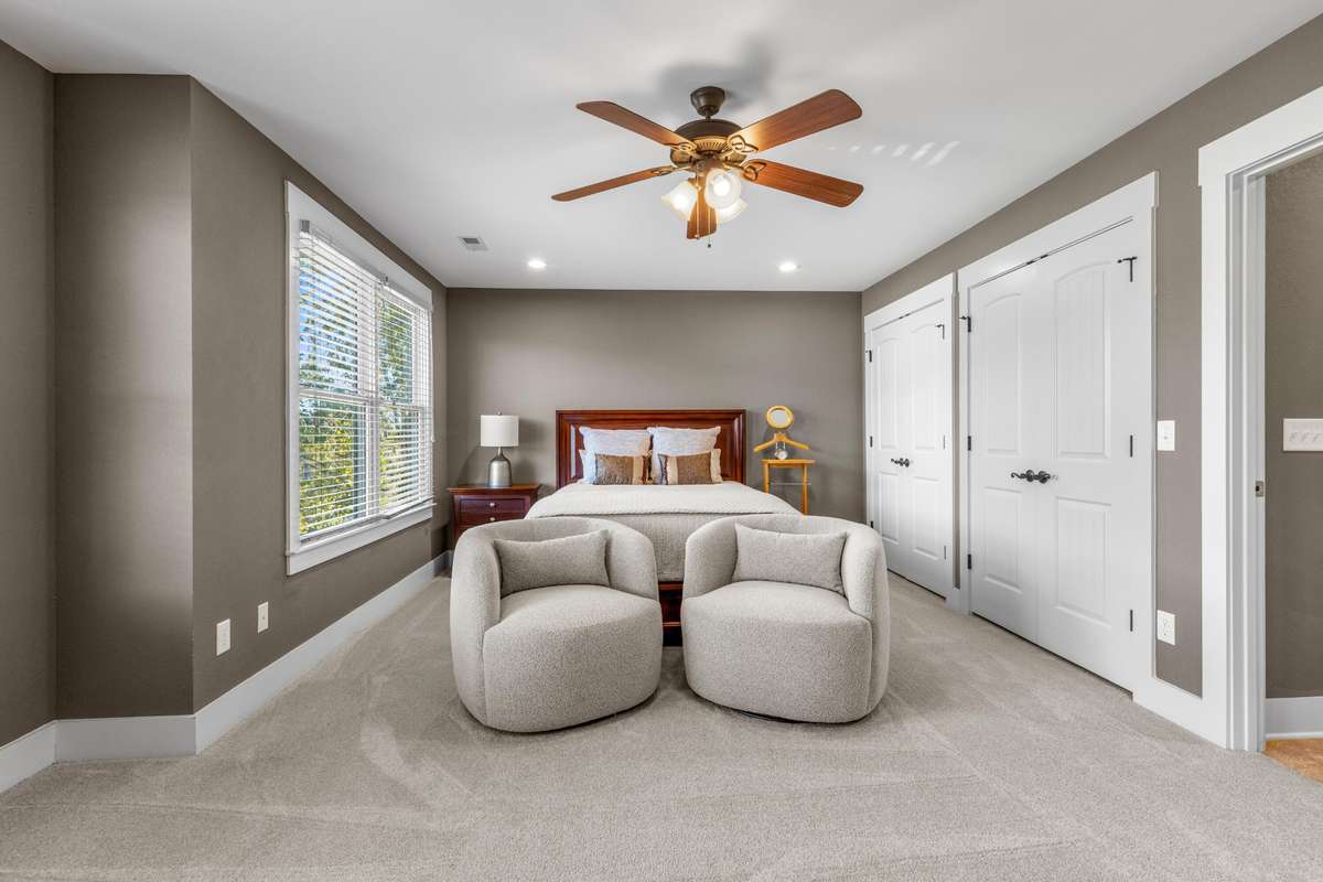 Upstairs, the primary suite offers a serene escape with trayed ceilings, a walk- in closet, dual vanities, a jetted tub, and a striking stone walk- in shower. A built- in makeup vanity with seating adds a touch of everyday luxury. The additional two bedrooms are equally spacious, each with its own ensuite bathroom to ensure comfort and privacy for family or guests.
