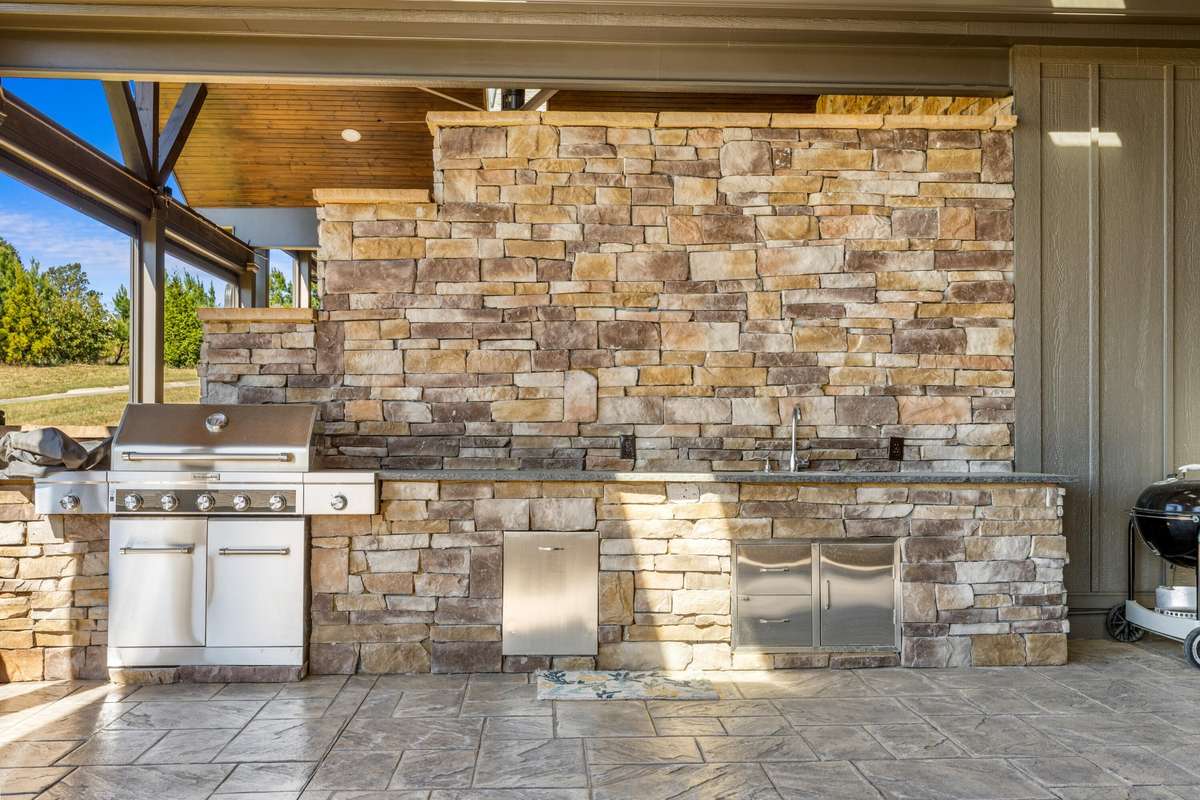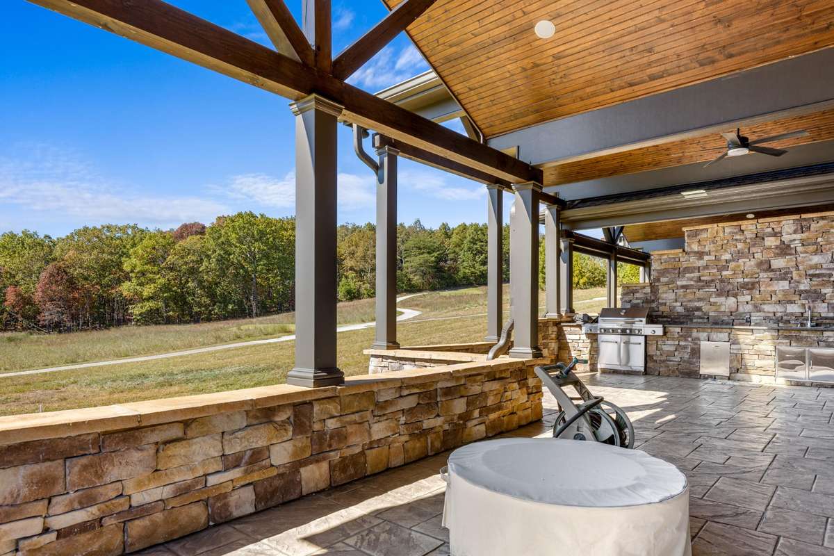 Outdoors, enjoy a covered back deck overlooking the course, complete with a built- in grill and vaulted hardwood ceiling. This inviting space provides the perfect shaded spot to unwind after a round of golf or to take in the serene mountain air.