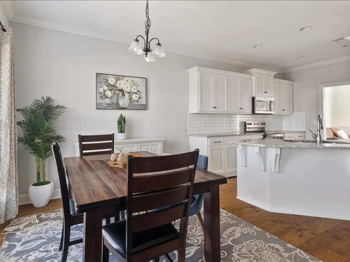 This is a 3 bedroom and 2. 5 half bath and has a formal dining room. This house also has a granite kitchen. It comes with stainless appliances ( refrigerator and stove/ range) and dishwasher. Granite countertops, tile shower, custom built cabinets and a large, covered porch. Convenient to interstate I- 40 and I- 840.