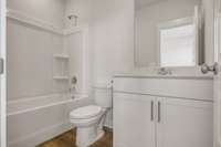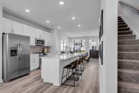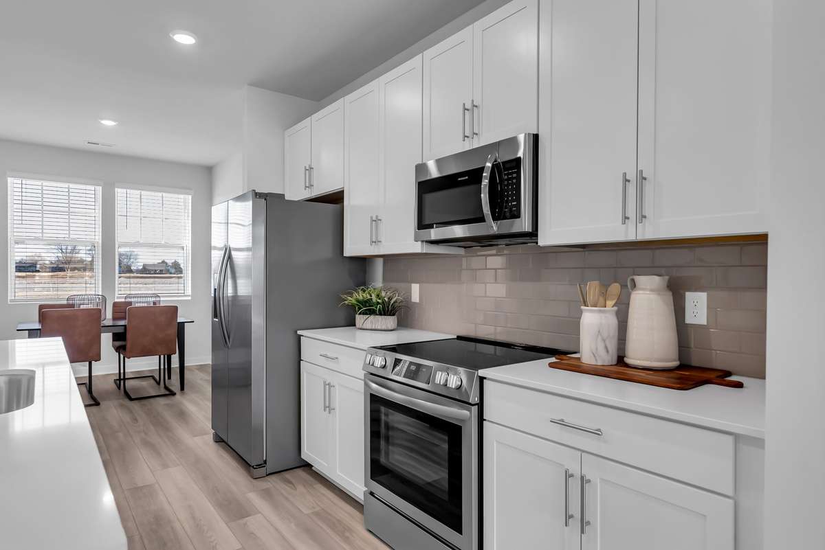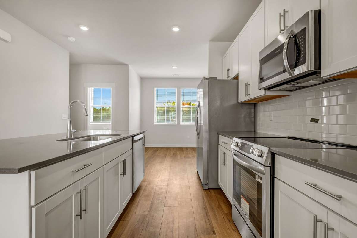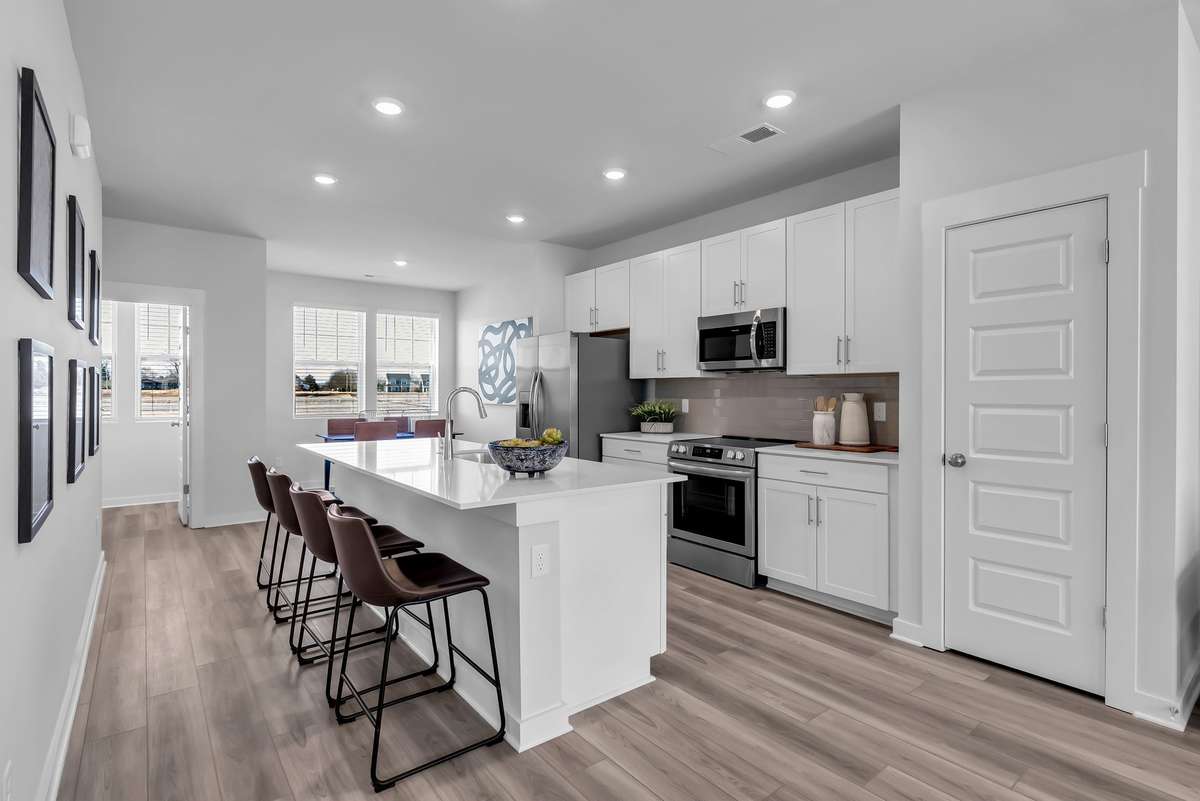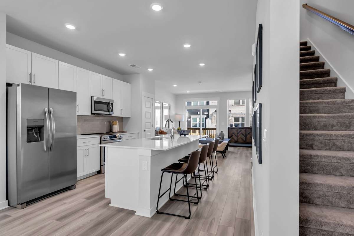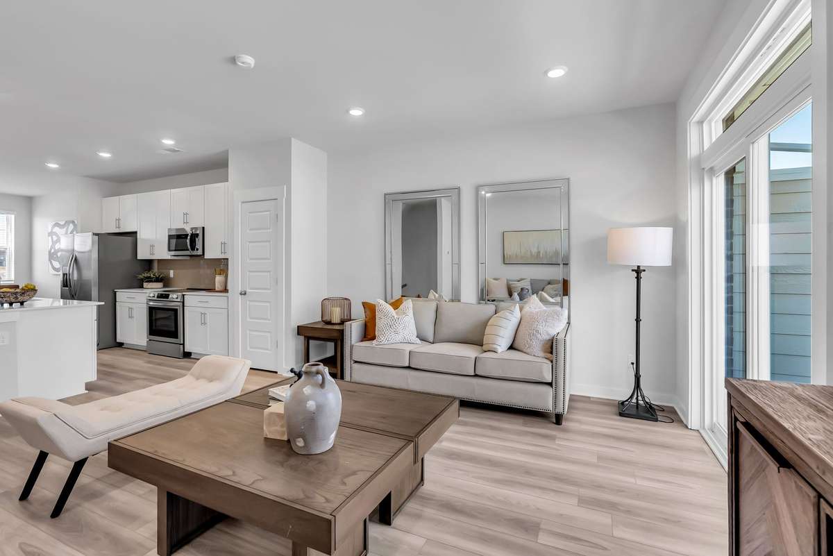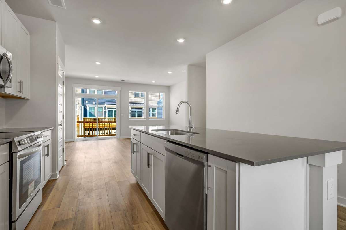 LOT # 30 - Gatlinburg. Upon entry into this new three- story townhome is a convenient two- car garage for storage space. On the second floor is the main living area, featuring an expansive Great Room with direct access to a modern kitchen and dining area. Residing on the top level are two- bedroom suites situated at opposite ends of the home to grant privacy, both of which feature attached bathrooms for enhanced livability.